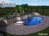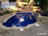 Experience the allure of a Cancun getaway with the Cancun Fiberglass Pool, a stylish and fun choice from Custom Fiberglass Pools, meticulously installed by AR Pools & Outdoor Living. This freeform pool combines elegance with a playful shape, making it a unique addition to your outdoor space.